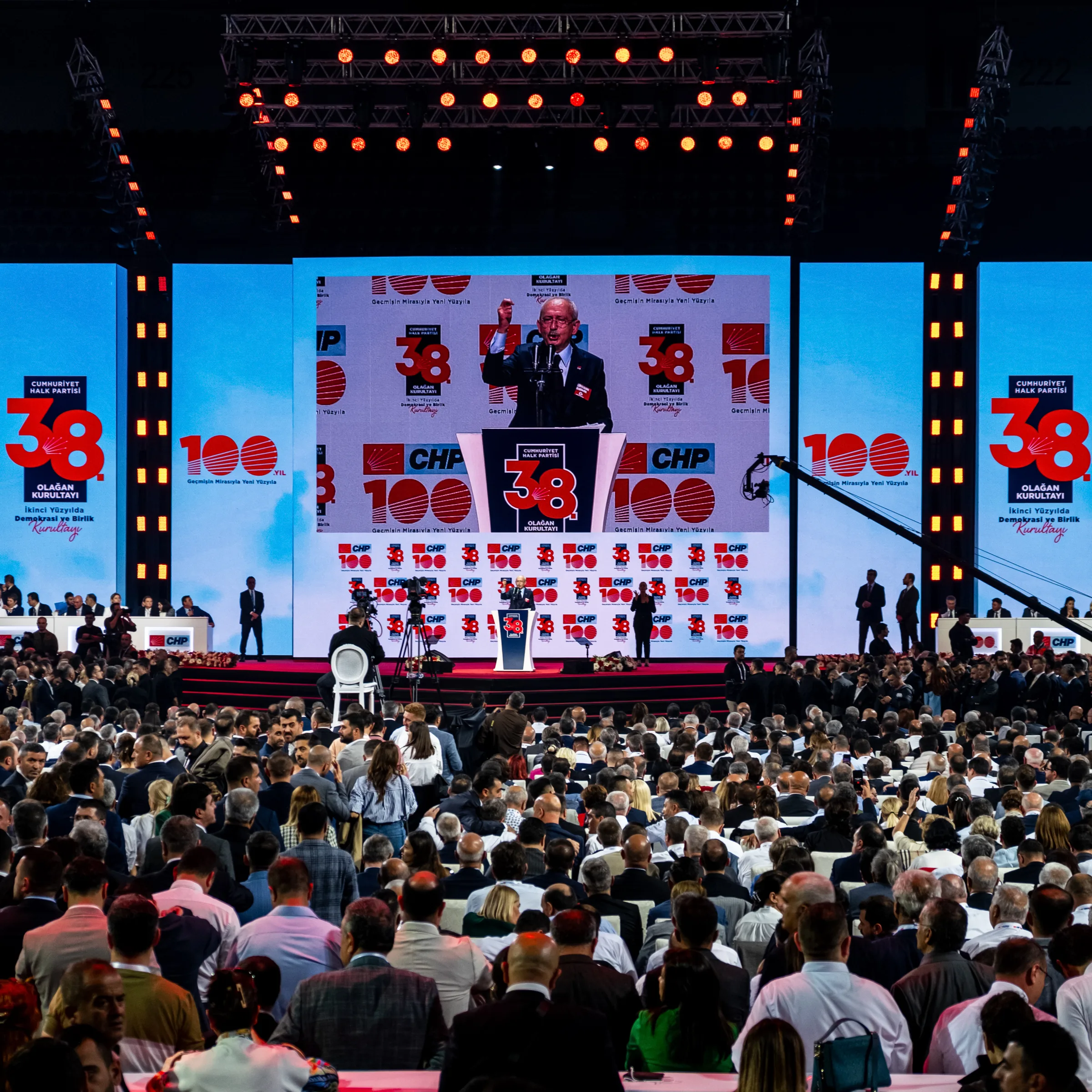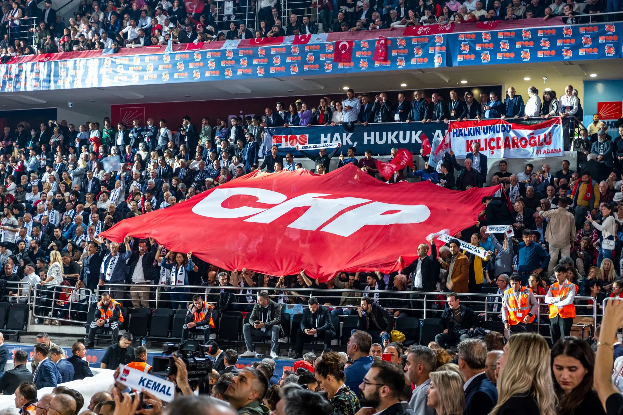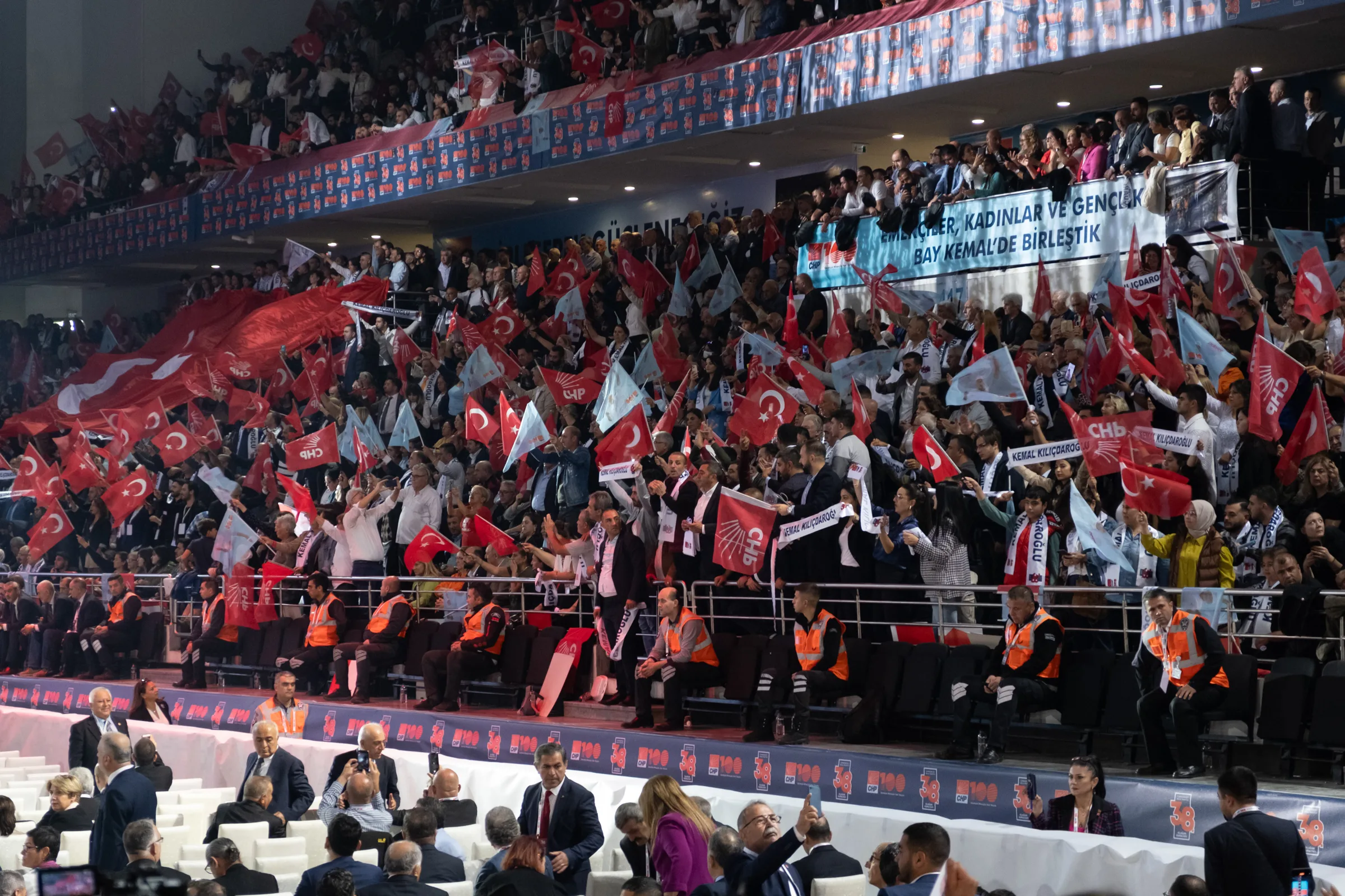Cumhuriyet Halk Partisi, 38. Olağan Kurultayı’nı 4 Kasım 2023 tarihinde Ankara Spor Salonu’nda gerçekleştirdi. 14-28 Mayıs’ta gerçekleşen Cumhurbaşkanlığı seçimlerinden yenilgiyle çıkan CHP’nin tarihi kurultayına, eski Genel Başkan Kemal Kılıçdaroğlu ile aralarında İBB Başkanı Ekrem İmamoğlu’nun da bulunduğu “Değişimciler” grubunun Genel Başkan adayı Özgür Özel arasındaki çekişme damga vurdu. Delegelerin ve izleyicilerin yoğun ilgi gösterdiği kurultay, zaman zaman tansiyonu yüksek konuşmalara ve salon içinde gerginliklere sahne oldu.