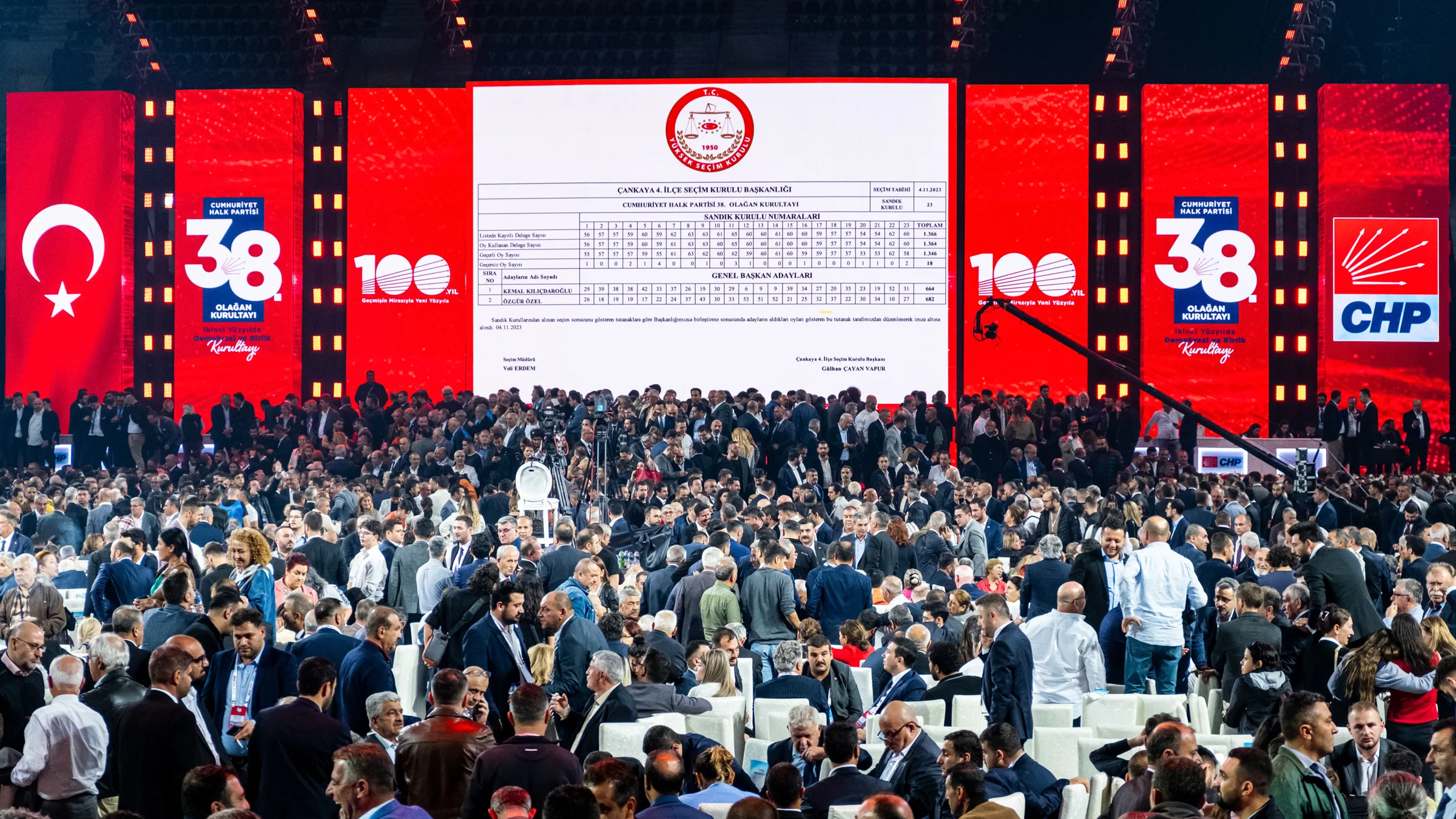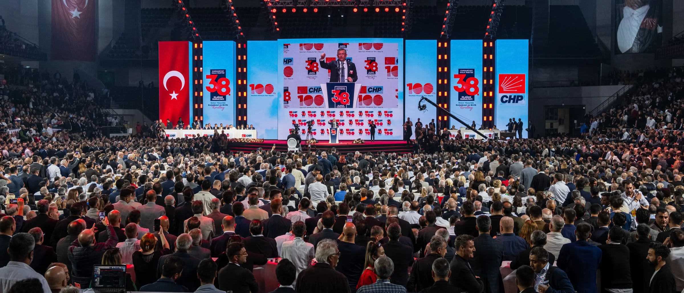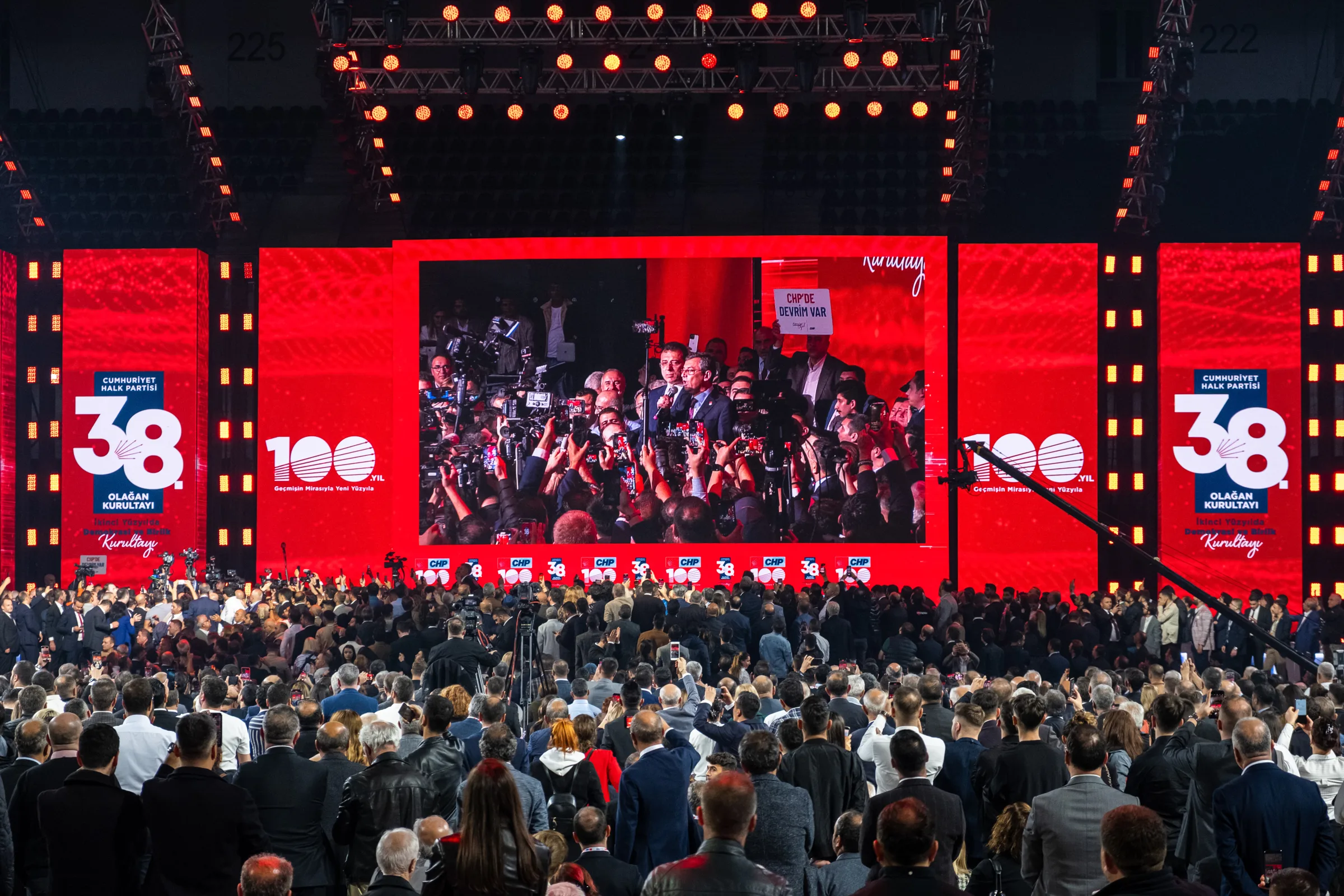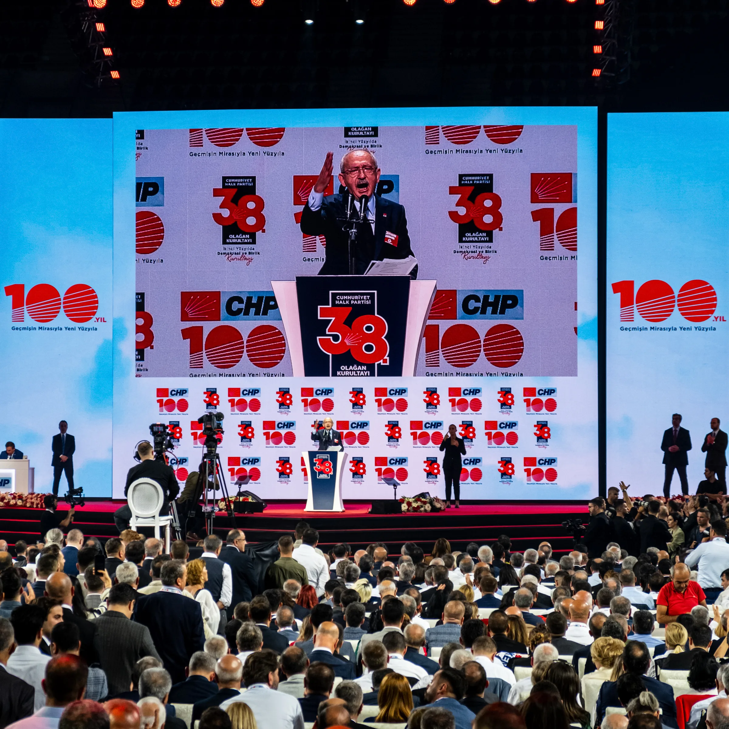 Cumhuriyet Halk Partisi, 38. Olağan Kurultayı’nı 4 Kasım 2023 tarihinde Ankara Spor Salonu’nda gerçekleştirdi. 14-28 Mayıs’ta gerçekleşen Cumhurbaşkanlığı seçimlerinden yenilgiyle çıkan CHP’nin tarihi kurultayına, eski Genel Başkan Kemal Kılıçdaroğlu ile aralarında İBB Başkanı Ekrem İmamoğlu’nun da bulunduğu “Değişimciler” grubunun Genel Başkan adayı Özgür Özel arasındaki çekişme damga vurdu. Delegelerin ve izleyicilerin yoğun ilgi gösterdiği kurultay, zaman zaman tansiyonu yüksek konuşmalara ve salon içinde gerginliklere sahne oldu.