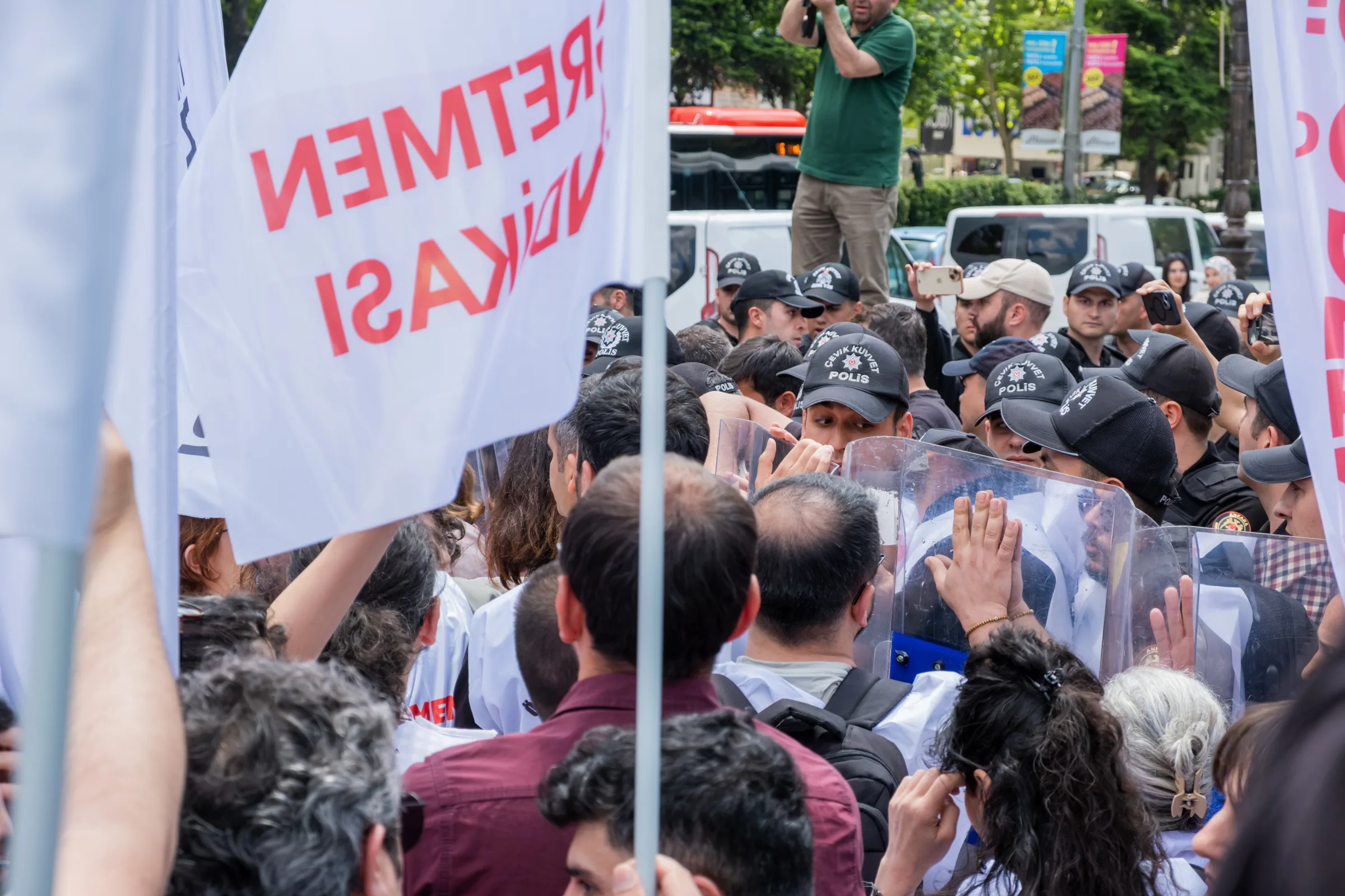 Özel Sektör Öğretmenleri Sendikası “26 Mayıs’ta Ankara’ya! Ekmek, Gelecek, Memleket Kavgasına!” sloganıyla tüm Türkiye’deki öğretmenleri, Güvenpark’ta buluşarak önce Milli Eğitim Bakanlığı’na yürümeye, ardından Türkiye Büyük Millet Meclisi’nde eğitim nöbetini başlatmaya çağırdı. Kamu ve özel sektör sendikalarının katılımıyla düzenlenen eylem, polisin yoğun müdahalesiyle karşılaşırken eylemciler saatler süren müzakerenin ardından barikatı açarak Türkiye Büyük Millet Meclisi’nin önündeki Milli Egemenlik Parkı’na yürüdü.